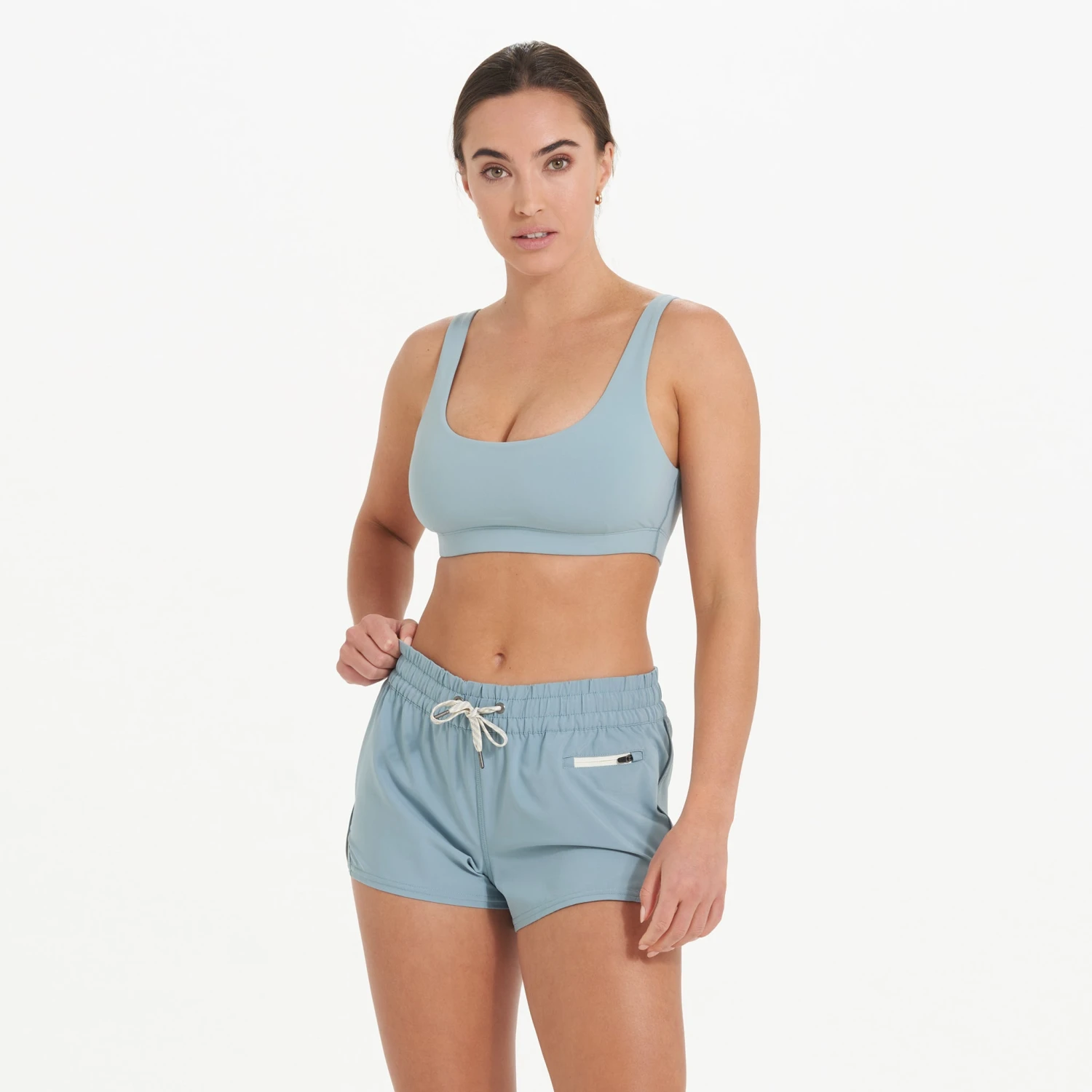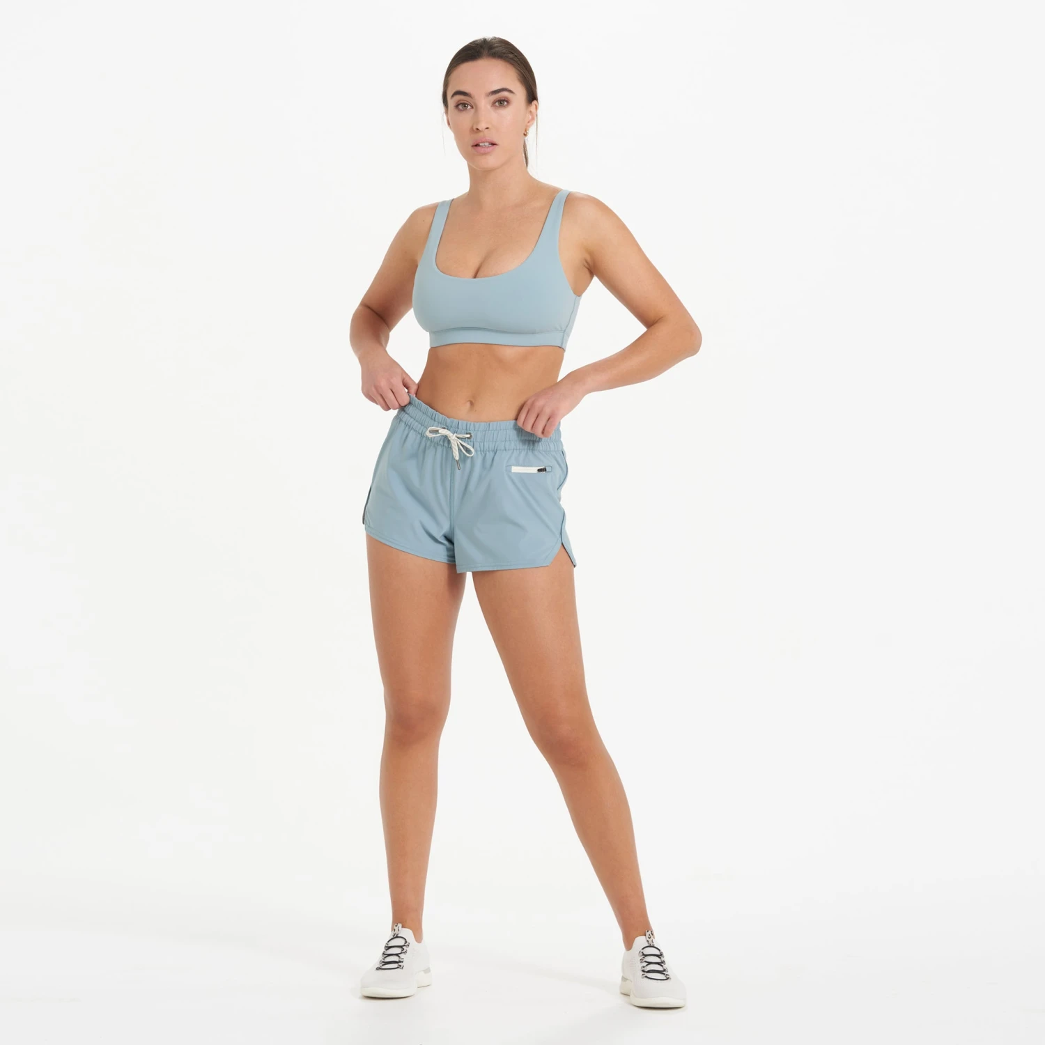 In and out of the studio, this bra is appropriately named the Daily. Featuring our peachy performance fabric, you’ll feel ultra comfortable with medium support in a double scoop neck/back silhouette. Great for yoga, running, hiking and traveling.