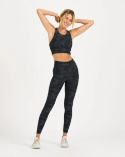Our beloved high-neck Elevation Bra sees you through all the moves, thanks to full coverage and medium support in performance stretch knit made from recycled materials, a moisture-wicking honeycomb mesh with removable cups, utrasueded feel, and woven logo patch – it makes a perfect matched set. Great for yoga and training.